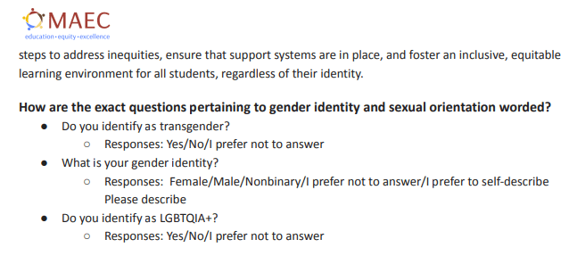No queremos que las consciencias de nuestros hijos, sean polarizadas por ideologías. Las ideologías se basan en informacion tendenciosa y carece de rigor cientifico. Las referencias de MAEC no tienen sustento cientifico ni bases estadisticas. No quieremos que nuestros hijos sean usados como “ratas de laboratorio” en experimentos socio-ideologicos. El Distrito Escolar debe de basarse en ciencias. Deben de enfocar sus esfuerzos en enseñar Matematicas, Fisica, Quimica, Lectura, Escritura, Literatura, y no meterse en campos privados y propios de los padres de familia. Lamentamos que EPISD este infringiendo la autonomia e intimidad familiar.